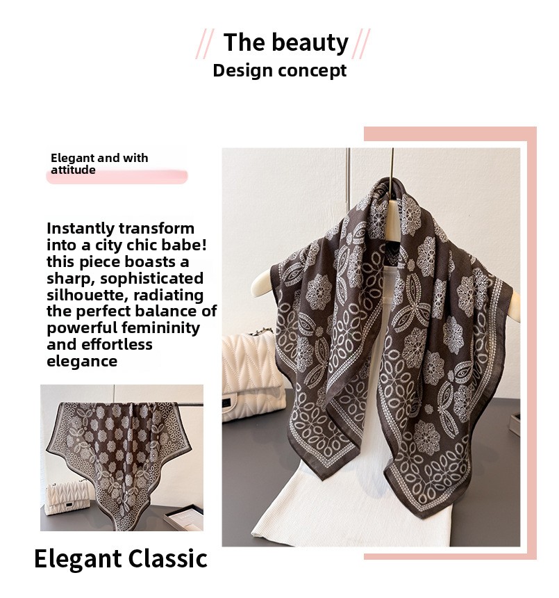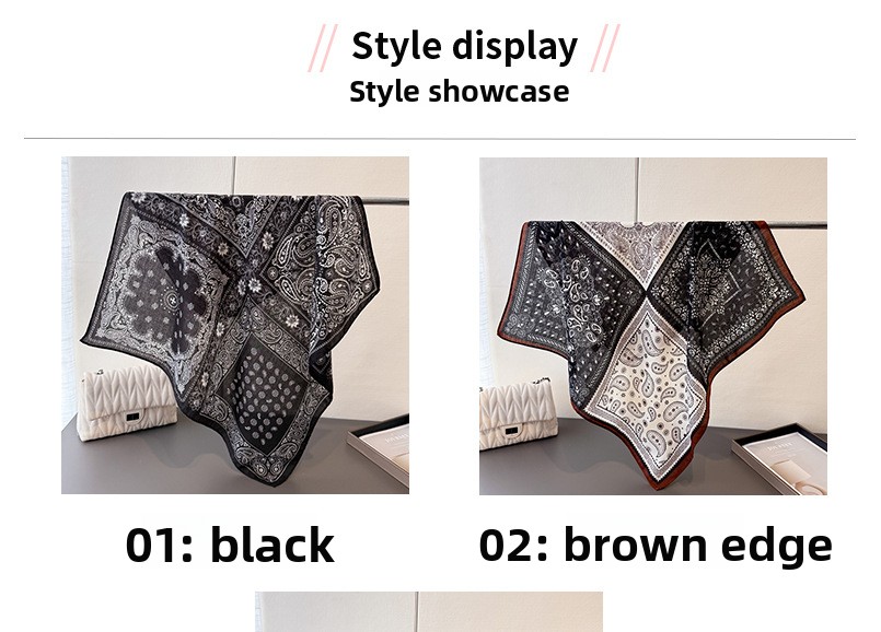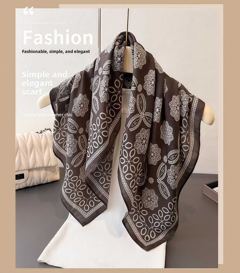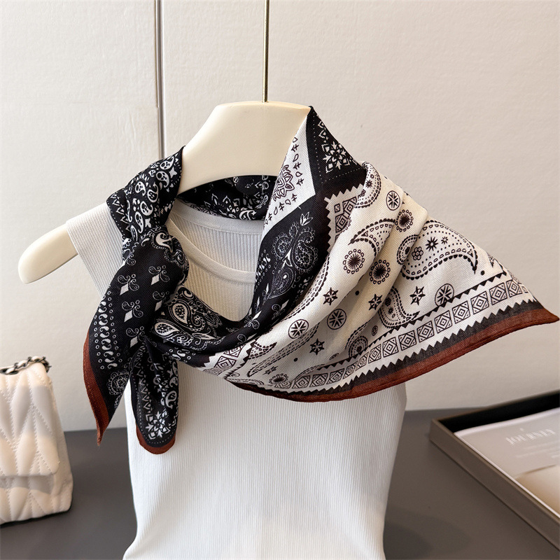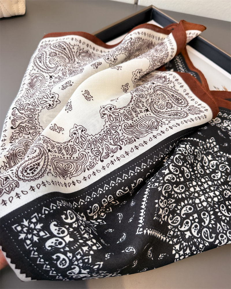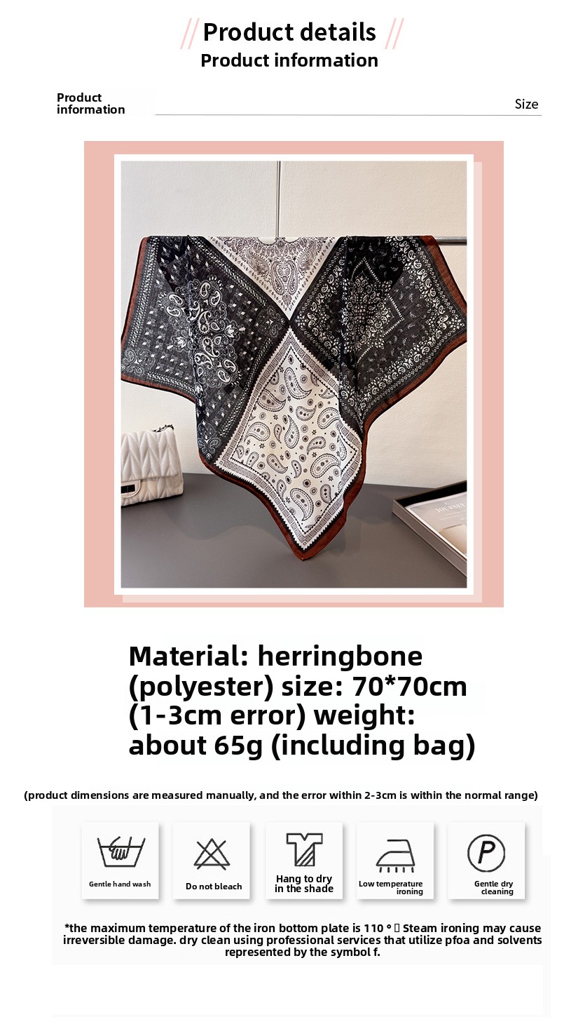 French Style Women's Scarf - Cashew Print Silk Square Scarf 70x70cm for Daily Wear