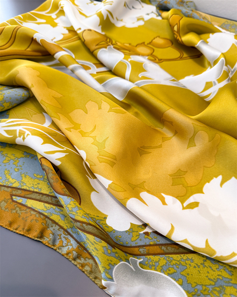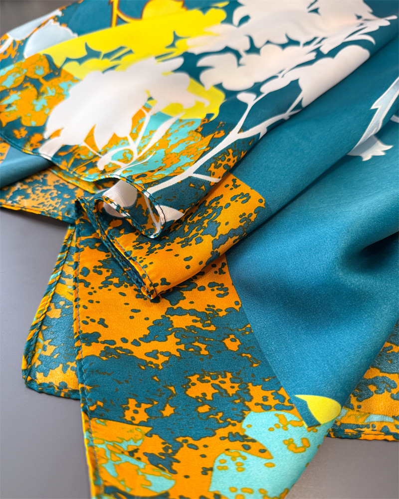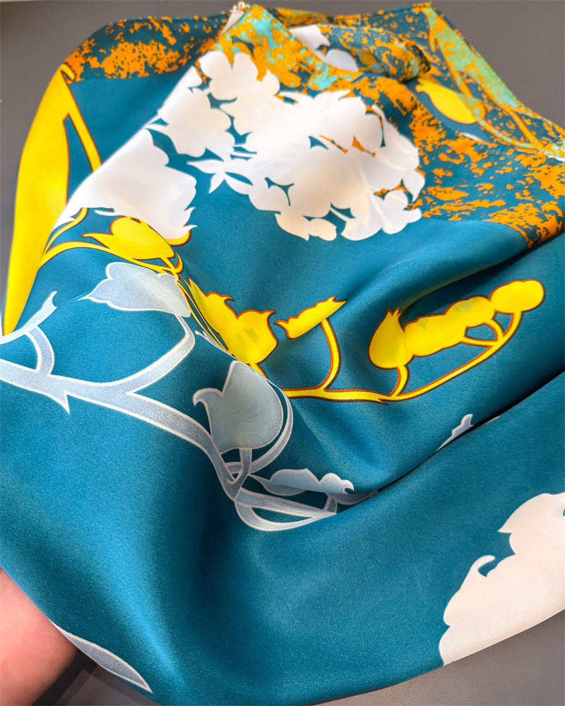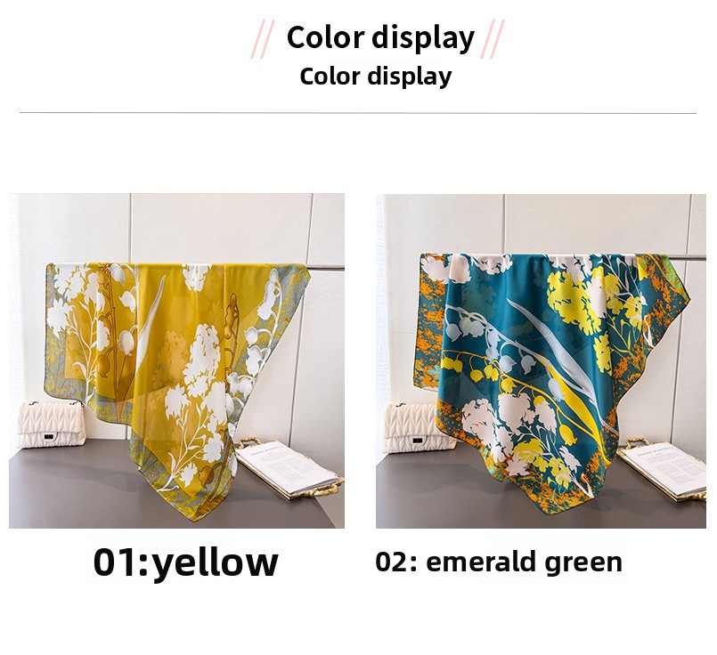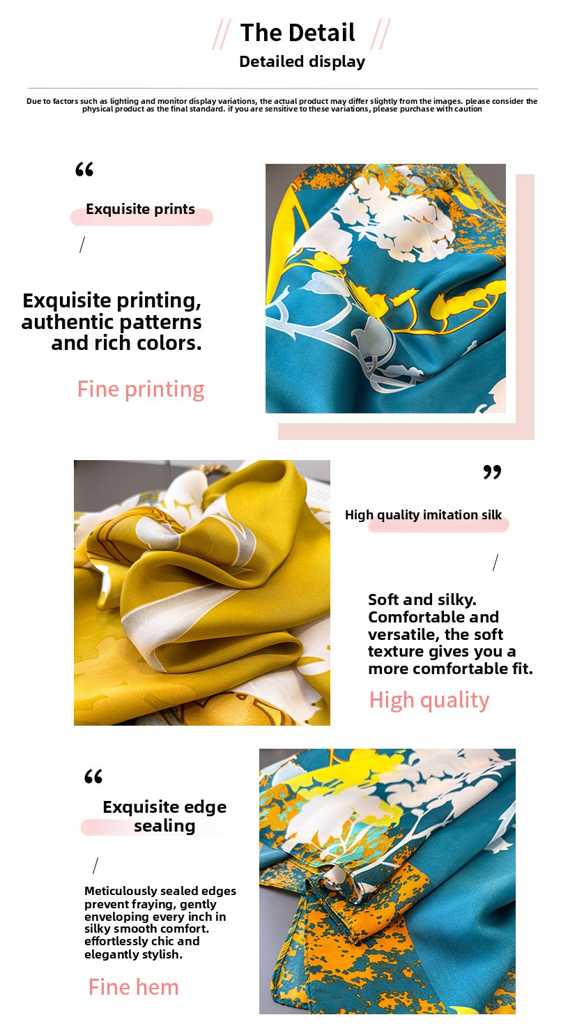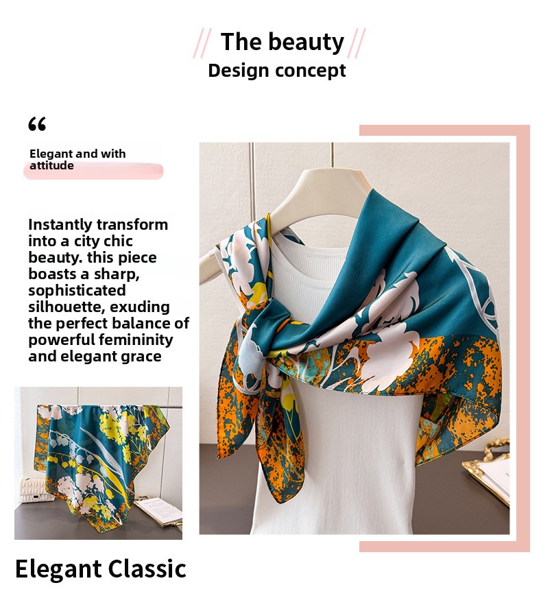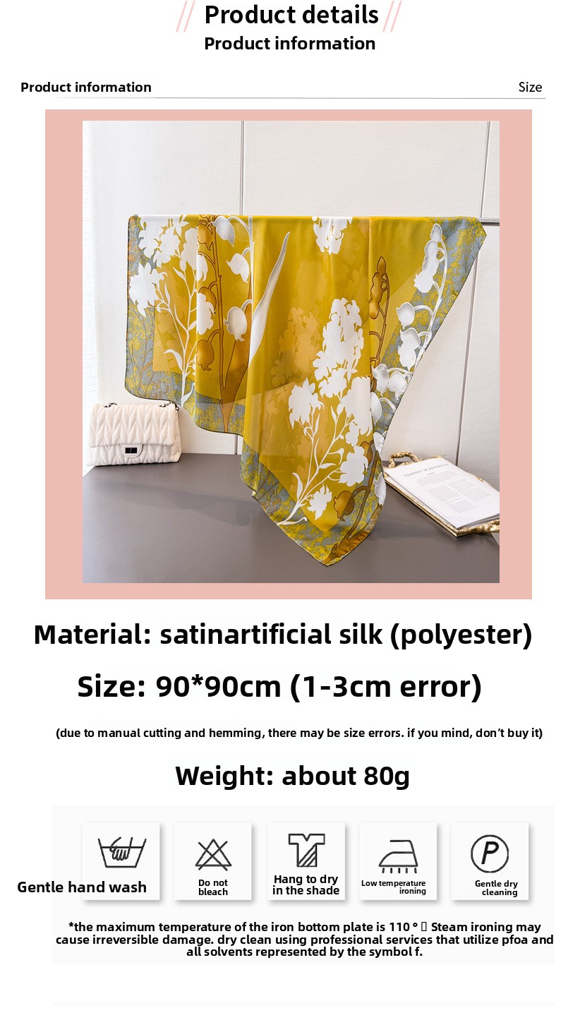 Elegant French-Style 90x90cm Silk-Like Women's Scarf - Bellflower Print Square Shawl